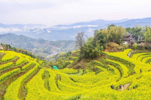 婺源最远近闻名的就是它的油菜花,而其中油菜花盛开最旺盛的就是江岭、篁岭两座古村,篁岭因为有高山的缘故,油菜花期会更久一点。篁岭是典型的山居村落,周边有许多梯田,层层叠映,绿意盎然,所以篁岭也被称为梯云人家。篁岭古村中拥有众多徽派建筑,个个精雕细琢,这些建筑都很有年代感,明清时期保留至今,而能住得起徽派建筑的,也是当地的大户人家,所以自古篁岭也是个鱼米之乡,非常富裕。