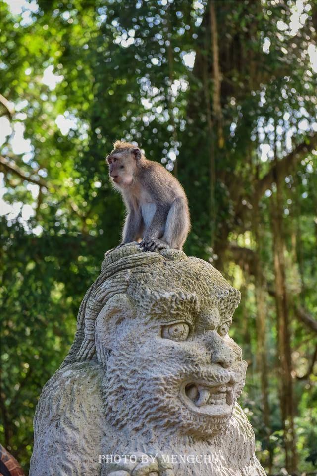 猴子在巴厘岛有着特别的地位,这里不仅猴子的数量众多,关于猴子的神话传说也不少。在巴厘岛印度教的文化中,这些猴子被认为是神猴哈奴曼的部下,也应被当作神灵敬奉(《西游记》中齐天大圣的形象也是源于印度神话中的神猴哈努曼)。在乌布西北方不远处,就有着一处猴子栖居的森林,叫做乌布圣猴森林,这里不仅是一座公园,还是一个自然保护区,更是最受游客欢迎的热门景点之一。