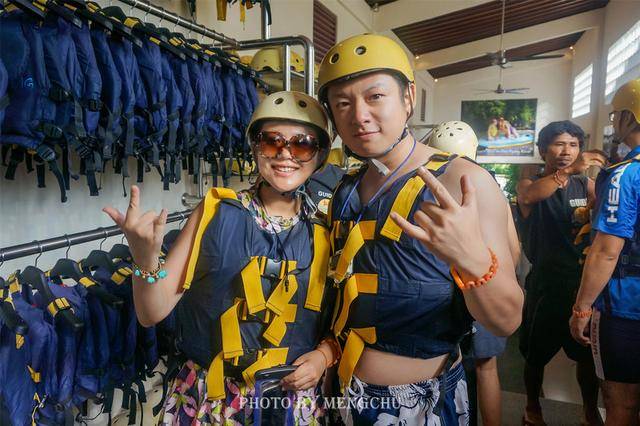 到达漂流公司之后,需要先穿戴好专业装备,头盔、救生衣、划桨,一个都不能少,所有贵重物品和电子设备都放在一个厚厚的防水袋中随身携带,记得要戴好墨镜哟,不管是防水还是防晒,都非常有用。通常是3-5个人一组,每组配一个教练,我们刚好三个人,也算是拥有一个私教了,皮肤黝黑的当地人,还会说几句简单的中文,人很幽默可爱。一切就绪之后,我们就忐忑的出发了!