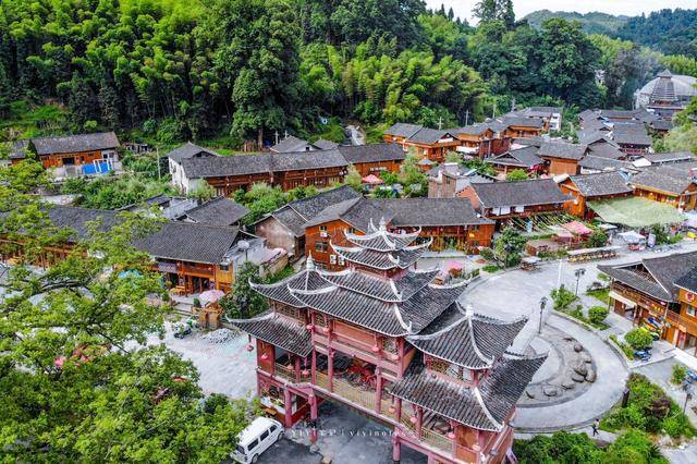 整个寨子不大,在广场的正前方还特地修建了舞台,每逢节日或者远客到来,当地的侗族人便会在这里举行隆重的晚会和表演,很有仪式感。并且寨子旁边就是青山与良田,非常安静,犹如一片室外 桃源 。