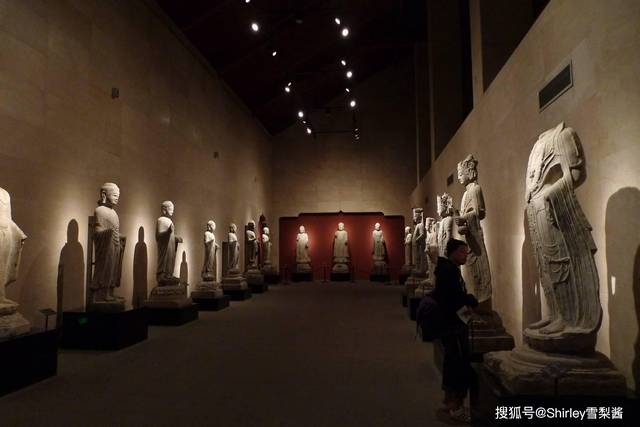 石刻艺术馆外观为仿古大屋顶结构,上下两层,局部三层,还获得了鲁班设计奖。总设计风格典雅,气势恢宏,入口仿照兵马俑坑甬道设计。进门后往下进入室内,入口的壁雕配上昏黄的灯光就能让人感觉到震撼。馆内不大,展出精品佛教、道教等石刻文物;但没想到的是,小小的石刻艺术馆里保存着包括国宝级文物——“昭陵六骏”(残存)在内的70多件汉唐时期珍贵的陵墓石刻。但其中有一件文物,看完不禁令人冒出一身冷汗!