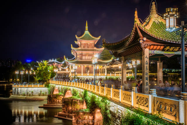 无论贵阳怎么发展,小编认为甲秀楼在贵阳的地位中度是首屈一指,它是贵阳旅游中不能错过的一处历史遗迹。甲秀楼位于贵阳市城南的南明河上,以河中一块巨石为基而建。始建于明,至今已有400多年的历史了。后来甲秀楼又被毁再重新建立,现存的甲秀楼是宣统元年(1909年)重建的。