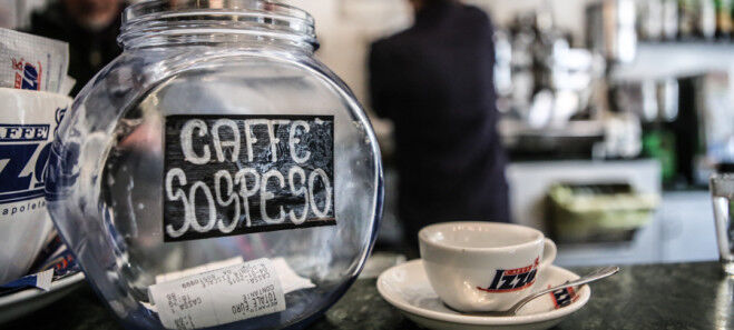 “Suspended Cafe”的意大利语原文是“Caffè Sospeso”,意为“待用咖啡”。 要想了解这个词的寓意,就不得不提著名的意大利咖啡文化。
