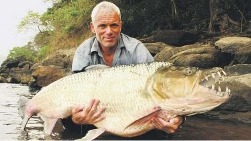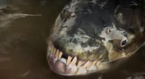 这头巨型怪鱼是非洲的虎鱼,也称为食人鱼。非洲虎鱼长有32颗牙齿,牙齿大小跟大白鲨的牙齿一般大。