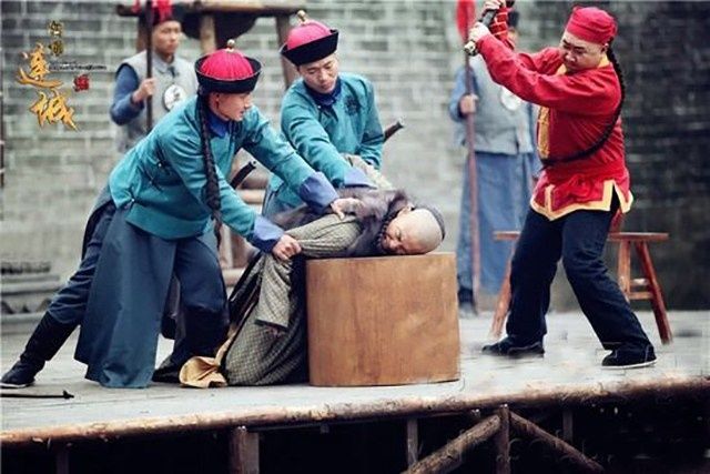 天刚亮的时候,官府会把死刑犯推入囚车,由卫兵带着将车经宣武门最终拉倒菜市口刑场,他们会让囚犯由东往西排列好,然后刽子手手执鬼头刀也依次排列妥当,到了指定的时辰,他们挥动鬼头刀让死囚人头落地。