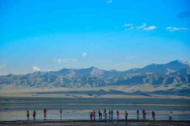 盐湖水域宽广,银波粼粼。天空白云悠悠,远处苍山峥嵘,蓝天白云、雪山映入湖中,如诗如画。如果遇上晚霞湖水好像有一个破碎的镜子,瞬间变得瑰丽万千!