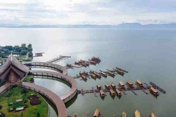 看了那么多精品湿地的美景,但是我觉得它的灵魂还是水域了,来到这个码头之后可以看到各种非常漂亮的船。这些都叫做画舫,码头的楼顶和船顶都是有一种弯月造型的设计,的远处看过去好像一个倒放的树叶,非常的唯美。