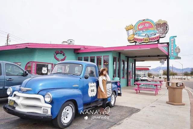 66号公路的小镇多数也是为了这路上奔波的人所存在,没有过于高档费时的料理,主要以速食为主。而比起灰灰的环境来说,这样可爱的店面让食欲增加了。