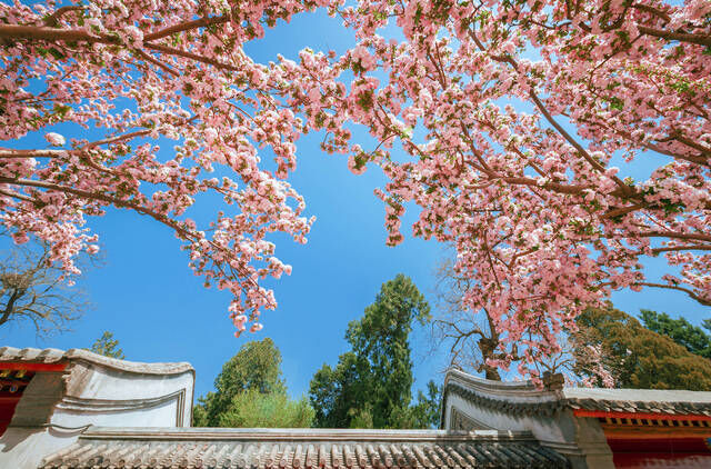 北海公园的“琼岛春阴”是著名的燕京八景之一——果然是名不虚传。清明前后,这里的山桃、连翘、海棠、玉兰各种花朵次第盛开,一派繁花似锦的春景。