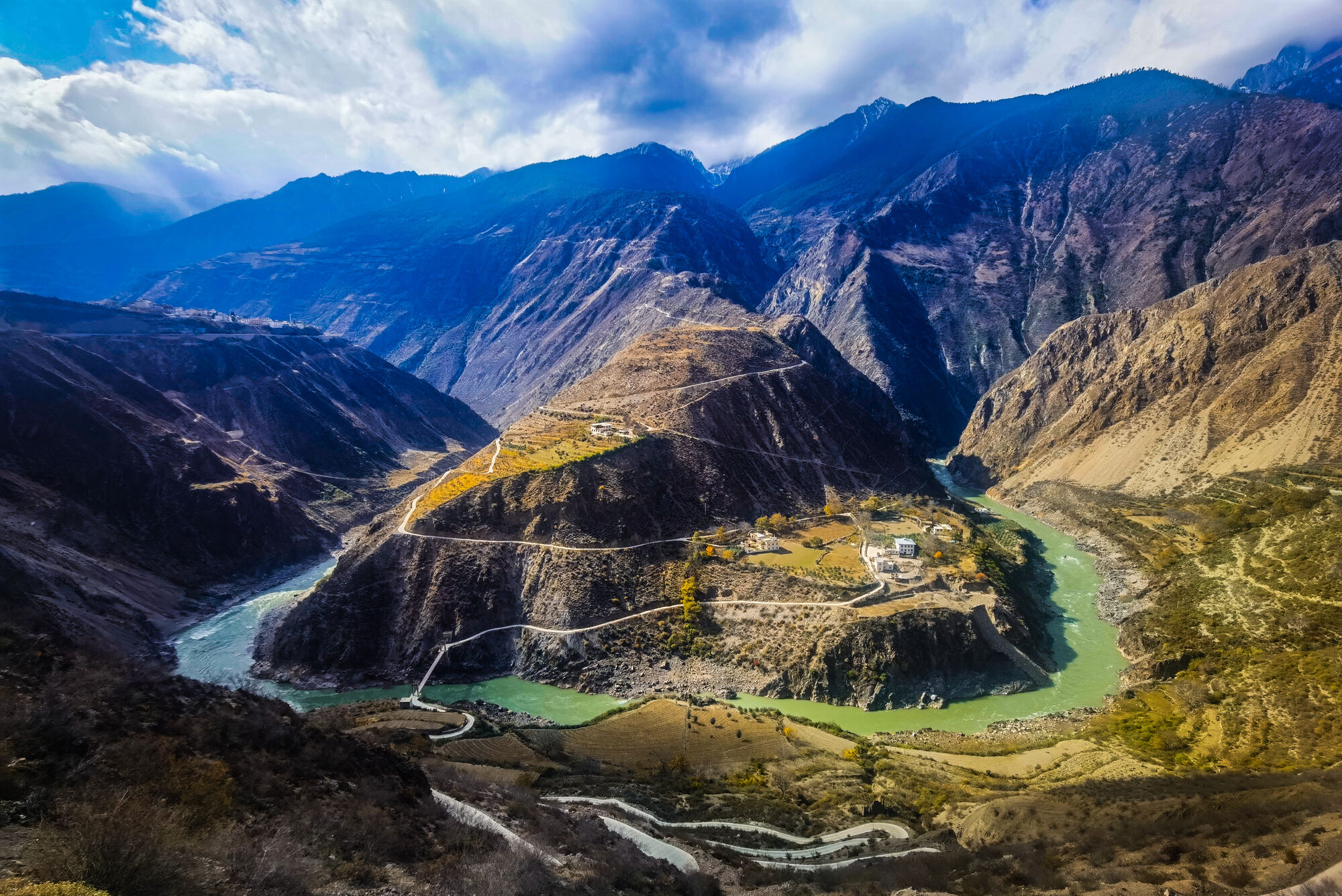 从怒江那边翻过碧罗雪山后,就算跨州了,然后要在澜沧江边向北行驶几十公里才能到德钦县,从雪山垭口的飞雪冰封,到澜沧江峡谷的阳光灿烂,感叹高原的气候无常。快到云岭乡时,沿途要经过一个壮丽的澜沧江大拐弯,冬季的江水像一条碧绿的锦带。
