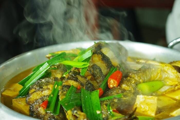 黄骨鱼焖豆腐:鱼先拖过油,在干锅里和豆腐一起焖很久也没有散碎,豆腐很嫩,又烫嘴又有味,可惜人少菜不少没要米饭,不然用这汤汁拌饭能下三碗。