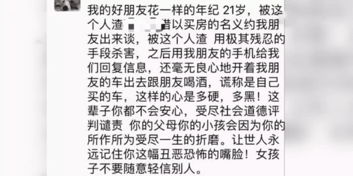 据韦某的好闺蜜介绍韦某被害后,覃某还拿韦某的手机给她回复消息,毫无良心的开着韦某的车去跟他朋友喝酒,谎称是自己买的车,这样的人真是太黑了,毫无人性。