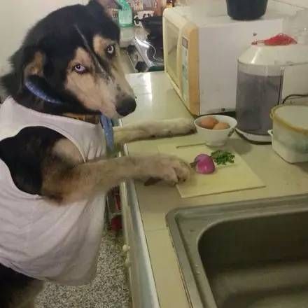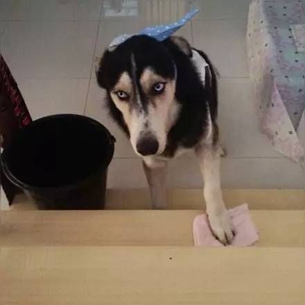 宠主的3岁的女儿放学回来,看见装扮后的二哈,吓得到处找宠主,哭着说家里来了狼外婆!