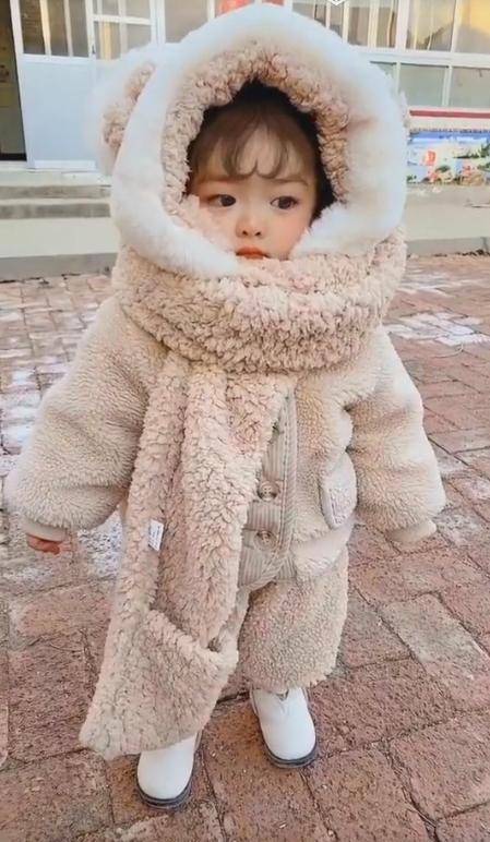 不过,这样过厚的衣物其实也不是很合适,这样让孩子的活动很不方便,走路都会有困难,如果是在北方的冰天雪地里,说不得还会有滑倒摔跤的风险。