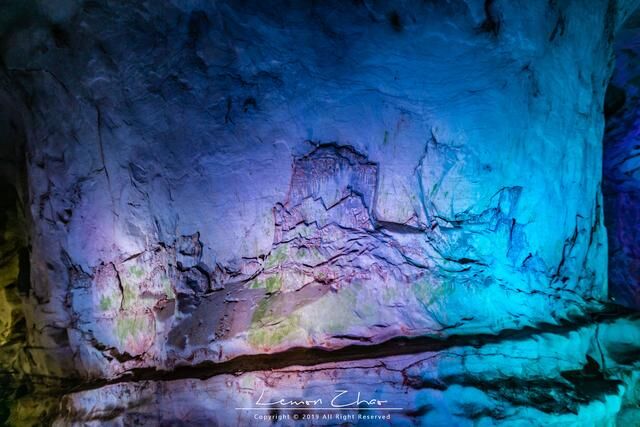 第一绝便是山水壁画,这是进入洞中最先看到的一绝。上面由钟乳石天然行程的黄山、九华山、天柱山等安徽重要的山脉,都可以清晰可见。这是由于常年钟乳石经过风化,石壁自然脱落而形成的奇景,正好与安徽所对应了起来,真的是绝配呀!