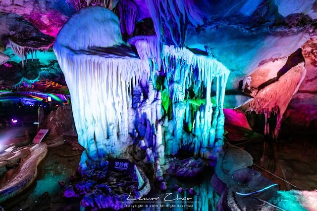 第四绝便是“天丝”。这是由于石灰水下降比较缓慢而慢慢形成的钟乳石柱,这样的奇景真的还是第一次看到如此大规模的,实属难得,堪称奇观。