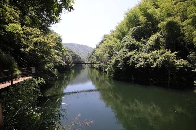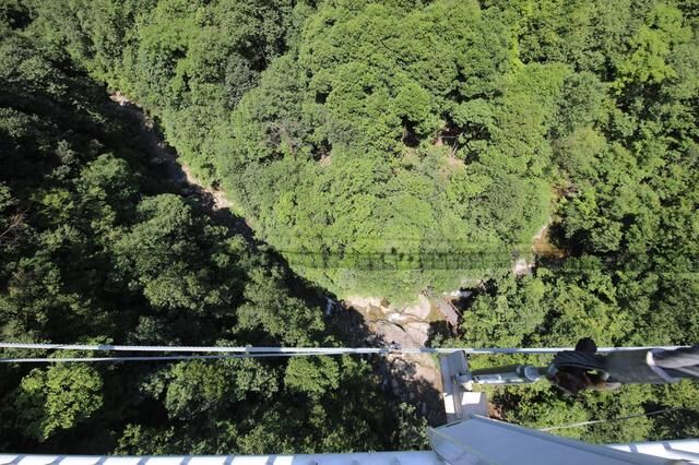 另外就是这里的桥了,连接着醉山野的山脉,成为了不可忽视的亮点。其中最有名的是素月桥和千花桥,而我却独爱素月桥。这是一座由钢索和木板所搭建的桥,走上去摇摇晃晃十分有趣,而它与山河形成的整体却是十分的好看,可以说是一幅天然的山水佳作。