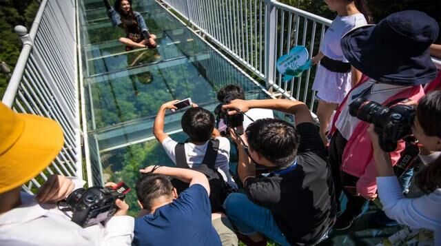 除了山野之间的乐趣以外,醉山野也建造了一座网红玻璃桥,架在了两座山川之间。这座玻璃桥可是当地小有名气的网红,曾经有游客在玻璃桥上拍摄了一段小视频,没想到竟然在网上得到了广泛的传播,不仅自己成为了小网红,甚至也带火了这座桥,很多游客慕名前来,为的就是模仿网红视频拍摄一段,幻想着自己一夜也可以有一百万的点赞。我们结伴而行的俄罗斯姑娘听到了,赶紧在桥上自拍了起来,要将这网红带回自己的国家。