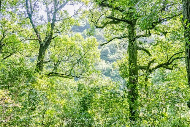 无论室外温度多么炎热,走进古树林便可以被浓密的绿色所包裹,凉风阵阵,夏日避暑纳凉的好去处。这里所生长的是安徽地域特有的苦槠树,超过100多株苦槠树已经在这里生长了超过千年的时间,树上布满了绿色的青苔,单位面积内的负氧离子也超过了1万,可以说是一个天然的大氧吧。