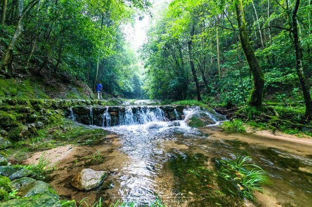 我们来的时候因为刚刚下过雨,因此这里的水流也显得湍急了许多。在峡谷中穿行一定要注意脚下的安全,这里的岩石上面都积攒着厚厚的青苔,可见这里的历史悠久、自然环境之优越。30多处小瀑布星罗棋布地散落在峡谷间,有高达湍急的,也是涓涓流淌的,每个瀑布都有自己独特的风格,别具一格。在这个负氧离子聚集的地方,深吸一口气,真的可以荡涤整个人的灵魂,忘却生活的烦恼。