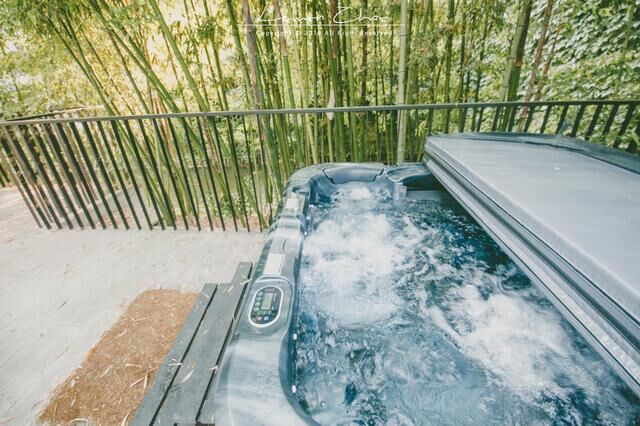 再往里面走,摆放的是一个户外露天恒温3人SPA浴缸,咕嘟咕嘟地冒着热气,舒舒服服地再里面泡上一会儿,洗去整个旅途中的劳累,让整个人都静了下来。