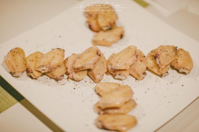 第三道馨庐鲜汁鸡翅。鸡翅从上午就需要开始腌制,晚上上炉烧烤。用这种手法锁住鸡翅的汁水,撒上松露和淡淡的胡椒粉。一口咬下去,满满的都是溢出来的汁水,满嘴都是满足感。