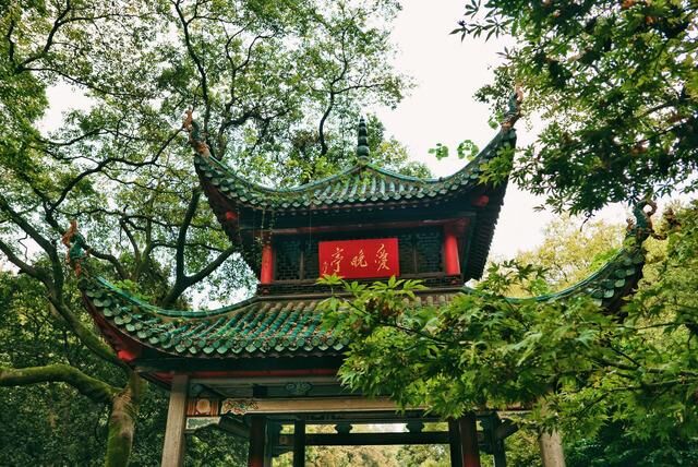 停车坐爱枫林晚,霜叶红于二月花中所描绘的爱晚亭也正在岳麓山之上,很多人特地前来在亭子面前打卡留念。