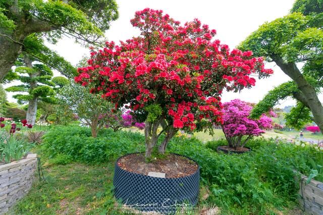 整个园子以“花中西施”杜鹃花为主题,特地从国外引进昂贵的杜鹃花品种,另外也有3000多株古树名木栽种在园子里,可以说目光所及之处都是价值不菲的花草树木,可能一棵树就等于一辆豪车的价格。