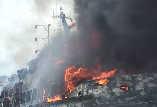 在泰国当地时间13:30,停靠在普吉岛码头的两艘大型游轮突然起火,整个现场浓烟滚滚,而且火势非常迅猛,两艘船体损毁都非常严重,消防队员也是花了将近半个小时才将火势扑灭。两艘游轮几乎变成了两个空壳,而且当时港口有众多游轮停靠,如果不及时扑救很有可能蔓延到其他船只上去。这次大火初步预估损失会在400-500万泰铢以上。