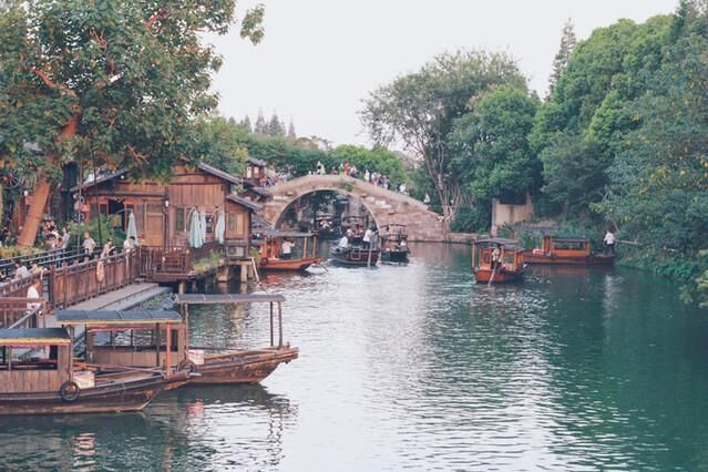 错综的房子,不多也不算少的游人,商业化有点严重的酒吧,船夫摇橹的乌篷船,似乎都成了古城游玩的标配。这样的乌镇为什么还有那么多人期待呢?我想,大概就是因为这儿慢节奏的生活吧。一条小河穿镇而过,将乌镇分为了东西两条大街,两岸房屋排列,长廊蔽日,小桥相连。这如同水墨画中走出来的景色一般,会让每一个到这儿来的人发出长长的惊叹。