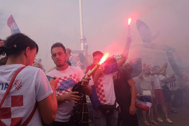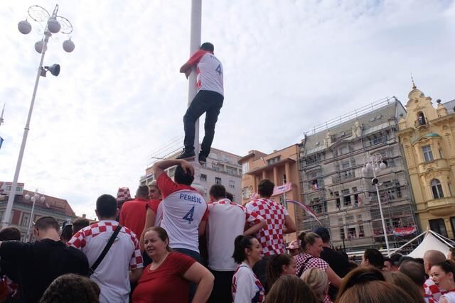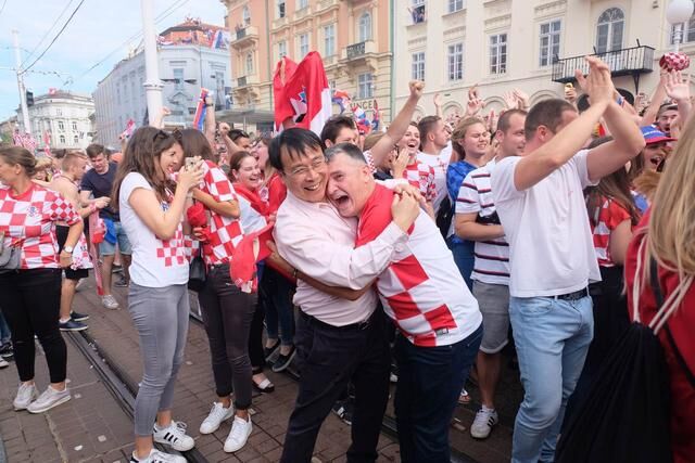 克罗地亚队中场大将拉基蒂奇在接受赛后采访的时候表示,我们在场上不仅有11名球员,身后还有420万的克罗地亚的同胞在支持着我们。确实,虽然输掉了比赛,在萨格勒布一点都没有悲伤的氛围。无论是本国人还是异乡人,人人见面都会给一个热情的拥抱,他们用庆祝代替了悲伤,用热情化解了尴尬,让我这个初来乍到的外乡游客也一下感到了宾至如归的热情。