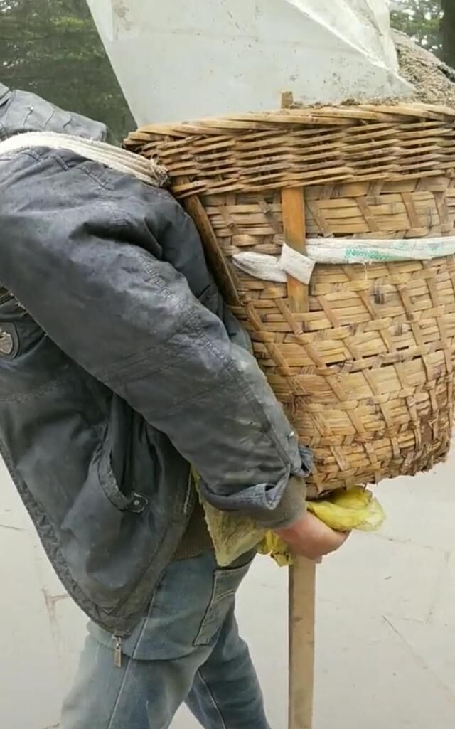 他黝黑的皮肤早就被晒得没了水分,一条条深深的皱纹早就爬满在脸上,这是岁月遗留在他脸上的痕迹,因为做这个根本穿不上什么好一些的衣服,更别说能够有钱去买什么名贵的新衣服了。上前询问,这一趟上山能够赚多少钱?从我自己心里的预估,一趟一两百肯定是有的吧,毕竟身上这百十斤的沙子,上趟山也得走好久。结果不善言语的他只蹦出了几个字“20元”。听到这个数字的时候我的喉咙瞬间是哽咽的,我走到了他的后面,眼泪已经不自觉地在眼眶里打转了。