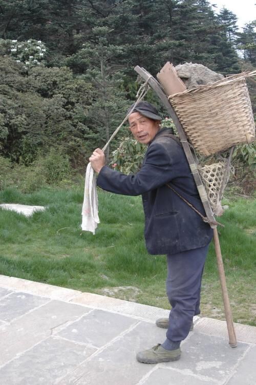 今天在网上看到了这样的一条短视频,拍的是在峨眉山上一位挑山公,看似羸弱的身子却背着百十斤的货物在路上休息。不经想起了自己上峨眉山的时候也遇到了一位挑山公,他的手里有根特制的拐杖,顶上有一个支撑架,在行走的时候这是一根助力的拐杖,在休息的时候因为不方便把东西卸下来,所以这个就成了支撑货物的支架,能够让自己负重的肩膀得到短暂的休息。