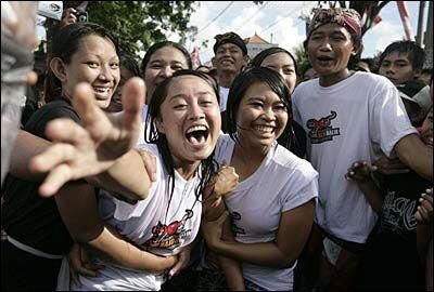 当然还真有陌生人之间亲吻的,还有一些误打误撞碰巧赶到这个节日的游客对于这个节日毫不知情的,传出来一阵阵地尖叫声。我看到一个挺漂亮的亚洲女孩儿,应该是来巴厘岛度假的游客,被一个当地的男生从后面亲了一下脸,就不禁大惊失色地尖叫了起来,眼泪也就顺势流了下来。亲她的男孩儿也瞬间懵了,看着蹲在地上哭的女孩儿手足无措,用有点不顺口的英文向她解释着什么。女孩儿的同伴示意他离开,就带着女孩儿赶紧返回了酒店。