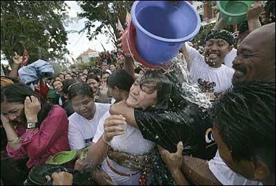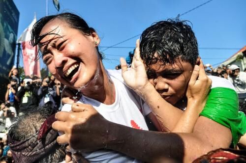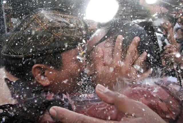 最后来跟大家解析一下为什么要给正在热吻的男女泼水呢?因为呀,印尼还是一个相对保守的国家,人们对于自己的情感表达不会太过外露。但是在这样的节日人们难免会肾上腺素激增,一旦场面太过于激情,牧师就会往他们身上泼水给他们降降温,以防出事儿。后来就不劳牧师出手了,只要是有亲吻的人,周围围观群众都会来泼水帮他们降温。
