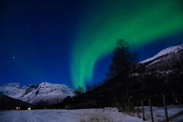 看着头上越来越亮、越来越多的极光,不时还有几颗流星闪过,极光和银河交织在一起的天空你能想象有多美吗?不由自主地就躺在了雪地里呆呆的看着天空中所发生的一切,就连相机没电了都没有发现。只是想这样静静地望着天空,这总感觉就很好。在极光中翩翩起舞,在这儿度过我的年华。