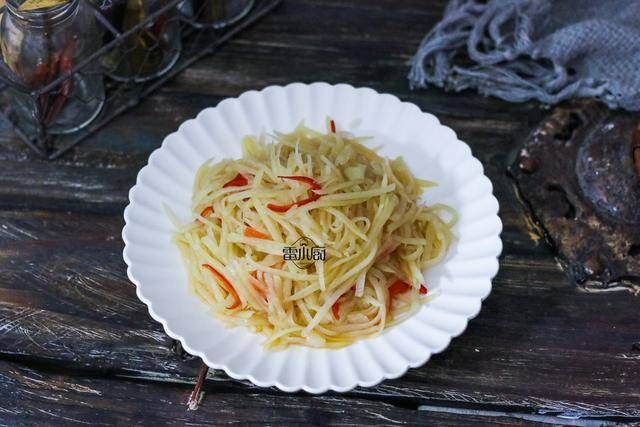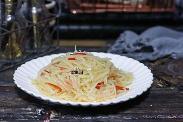 土豆丝虽然简单,便是想要做出来好吃,并不容易,往往越是简单的菜越是考验厨艺,为什么饭店的土豆会做得那么好吃,而自己做出来的土豆丝却总是差把火呢,当然是有一些方式方法的咯。首先,土豆丝不管是切成丝,还是用工具擦成丝,有一个步骤一定不能少,一定要把土豆中的土豆淀粉充分清先干净,这样炒出来土豆丝才会口感清脆。其次,土豆丝一定要使用旺火炒,这样才好吃。
