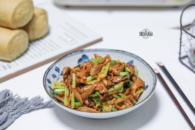 食材:肥肠,芹菜,郫县豆瓣酱,生姜,大蒜,料酒,花椒, 八角,食用油,