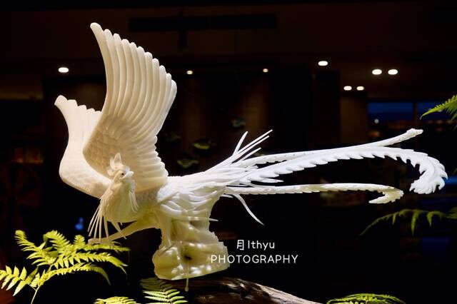 走进大厅就被大厅中那仙气缭绕的黄鱼宴所惊艳到了。宽广的大厅,可以放置几十桌,是个举办宴会的好地方,中间的位置已经摆满了由各餐厅主厨制作出的黄鱼宴,每一道都让人非常惊艳,颜值担当啊。