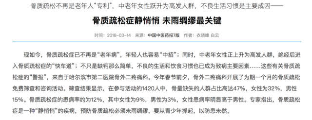 权威数据表明,我国骨质疏松患者已接近7000万,预计2020年时骨质疏松患者会增加到2亿多。【1】