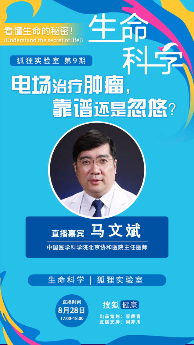 这玩意儿究竟是啥?难道癌症都可以“电疗”了?8月28日(周三)17:00,搜狐健康·狐狸实验室第九期,与你一起说说电场治疗肿瘤的玄妙。
