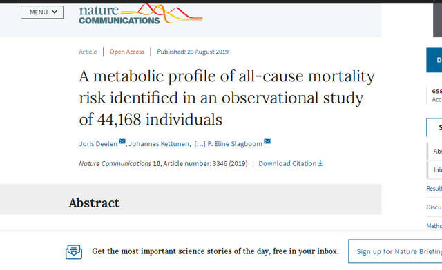 据科学家网(The-Scientist)网站8月20日报道,《自然通讯》杂志发布的一项研究介绍,医生可以通过检测患者血液样本中的14种代谢物,预测他再活5到10年的可能性。作者称,这一信息可以为医生提供必要的治疗参考,比如评估一个身体虚弱的人应采用手术等积极手段治疗,还是应该采用一些保守方式。