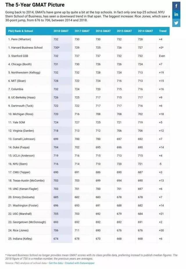 今天小编就带大家解读一下这些院校近5年的GMAT成绩变化趋势,看看都是谁涨幅最大,同学们也可以将此作为申请院校GMAT成绩要求的参考喔~