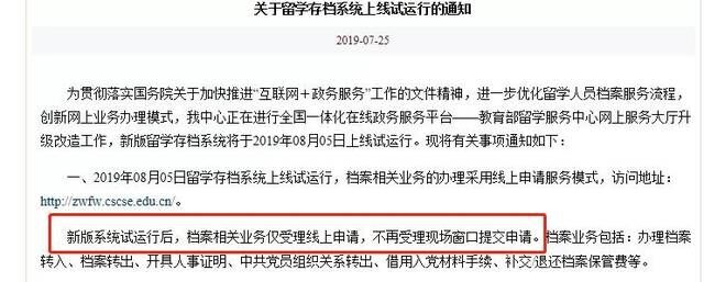 新版留学存档系统上线之后,所有档案业务,包括档案存入、档案转出、开具人事档案证明、党员组织关系转出、材料借出、补退费,统统都在线办理。