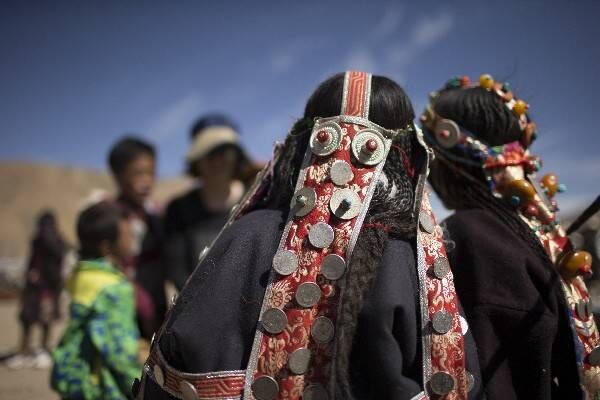 藏装是藏族人平常的衣着,基本特点是腰襟肥大,袖子宽长,衣领、襟边、袖口、下摆等处多以细毛皮、氆氇或色布镶边。白天劳动时多脱掉一袖或双袖,左右盘扎于腰间。男子的藏装束腰带时,一般将袍子下摆提至膝盖。女子束腰时一般将袍子上提少许,使下摆遮住踝关节。具体的式样,男女及各地区各有特色。藏族服装具有悠久的历史,对藏族服饰的研究必然促进、加深对藏族的形成及文化发展史的研究。据史料考证,早在公元前11世纪前后,藏族的服饰,可能就已具备了现代藏族服装的基本特征了。后来由于居住在西藏各地的部、族的互相交往以及其他因素的影响,藏族服饰又在不断演变、发展和丰富了。