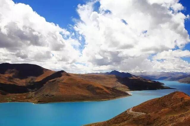 海拔四千多米的三大圣湖:纳木错、羊卓雍错和玛旁雍错,仿佛是从天上飘下来的一块蓝缎,在阳光的拂动下,漂浮、荡漾。天蓝蓝水蓝蓝,风蓝蓝心蓝蓝。梵高,用浓烈的黄,点化了向日葵的魂,又是谁,拿清澈的蓝,泼出了西藏的天,西藏的湖?