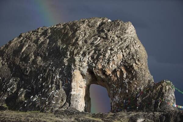至今,很多人都不会知道,在纳木措北岸竟深藏着一处秘境,这里是老西藏们心中深藏的一处天边秘境,是传说中的朝圣圣地。位于纳木措北岸著名的恰多南卡岛上,有一座形似大象的小山,这座小山如同广西桂林市内那座象鼻山,同样因酷似一只站在湖边伸鼻豪饮甘泉的巨象,所以名字都和象有关,这座天然形成的巨大石象,站立在辽阔的纳木措岸边,象鼻深入湖面,而石象的身体与象鼻之间,就如同一个通往天堂的巨大圣门,当地人把这个地方称为“圣象天门”。