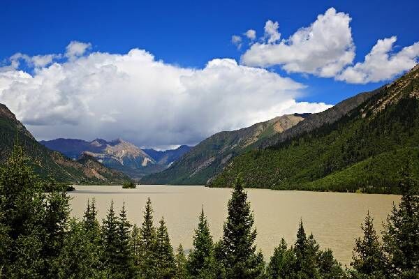 位于昌都八宿县境内的然乌湖,是一个由于山体崩塌而形成的堰塞湖,是藏东第一大湖,也是风景如画的“西天瑶池”。湖周围高山危耸峻峭,众多海拔5000米以上的高峰皆有冰川发育;而山下近湖坡地则长满了青翠苍劲的松柏等针叶林丛,在这群山绿影环抱之中的然乌湖显得格外静谧而妩媚。明镜般的湖面倒映着四围的雪峰、翠林和那蓝天白云,景色异常迷人。然乌湖北面有著名的来古冰川,冰川延伸到湖边,每当冰雪融化时,雪水便注入湖中,使然乌湖经常保有丰富的水源。然乌湖也是川藏线上的极致风光,虽然没有入选国家地理杂志中国最美的湖泊,可它的景致依然吸引了不少人前往。