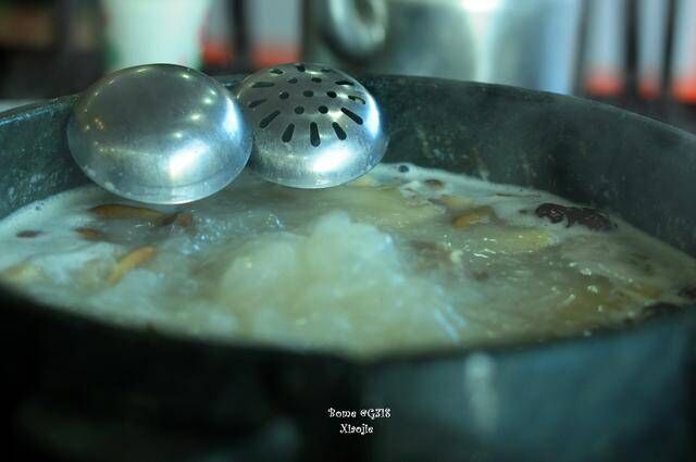 鸡是西藏特有的藏香鸡,据说这种鸡是西藏人放养在外面的,跟藏香猪一样绝对是纯天然绿色食品。据资料记载,藏香鸡是我国雪域高原特有的地方鸡种,耐寒和耐缺氧,适应于高原寒冷恶劣多变的气候环境,特殊的地域,特殊的饲养方式,使得藏鸡成为肉质鲜美、蛋白质和维生素含量高、脂肪含量极低的优质天然食品。石锅鸡辅以人参、党参、林 芝特产手掌参、何首乌、当归、藏贝母、山药片、天麻、薏仁、百合、生姜、胡椒、红枣、枸杞等药材熬制,用雪山上流下的溪水慢慢炖两个小时左右才正式上桌。