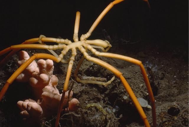 巨型海蜘蛛是一种生活在深海之中的蜘蛛,当然它跟陆地的蜘蛛还是存在着很多的不同性,因为陆地上的蜘蛛一般来说都是比较小的,而这种巨型海蜘蛛可以称之为最大的蟹类,甚至它的体长能够达到三米以上,这种蜘蛛比较喜欢生活在寒冷的水温下,像是南极地区,就是它们比较适宜的家园。